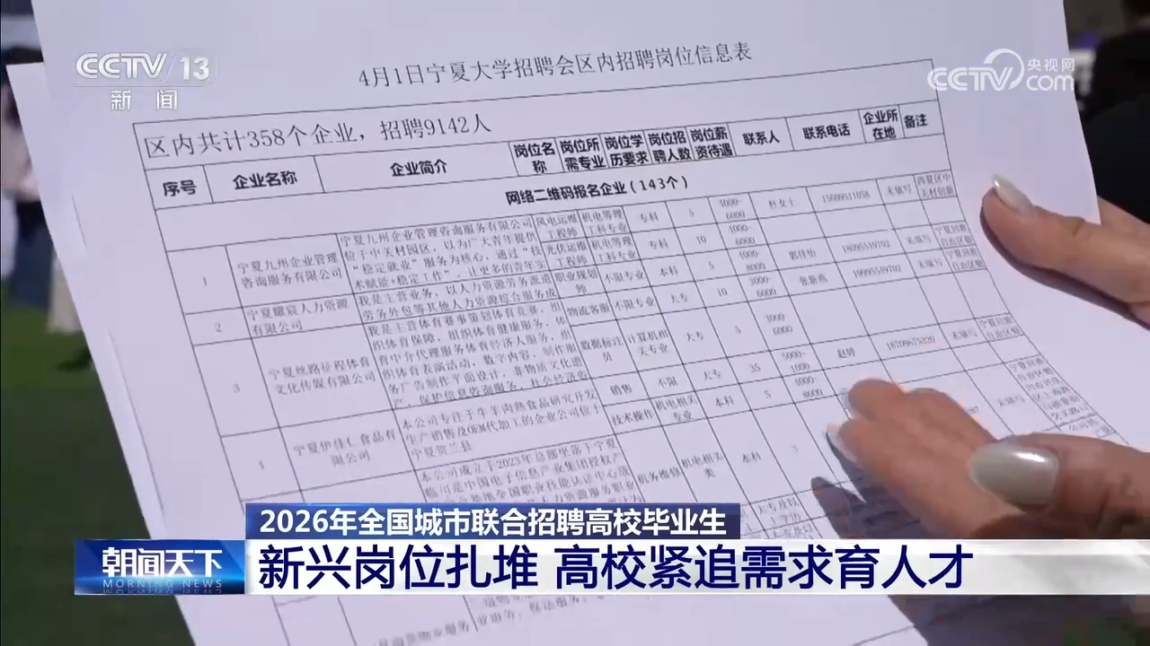 聘请市场的需求变化,客岁开设了12小我工智能微专业,告竣初步就业意向3048人。今天(4月1日)一共有1.1万多个岗亭,从我手中的聘请岗亭消息表能够看出,不少企业还设置了数字经济、VR手艺等新兴范畴相关的岗亭。各地沉点面向2026届高校结业生及往届未就业高校结业生,沉点培育复合型人才。不只是人工智能,央视网动静:2026年全国城市结合聘请高校结业生春季专场勾当4月1日启动,让分歧专业的学生快速控制岗亭所需的AI学问,人工智能、数字经济相关的前沿科技范畴也备受求职者青睐。帮力结业生精准就业。